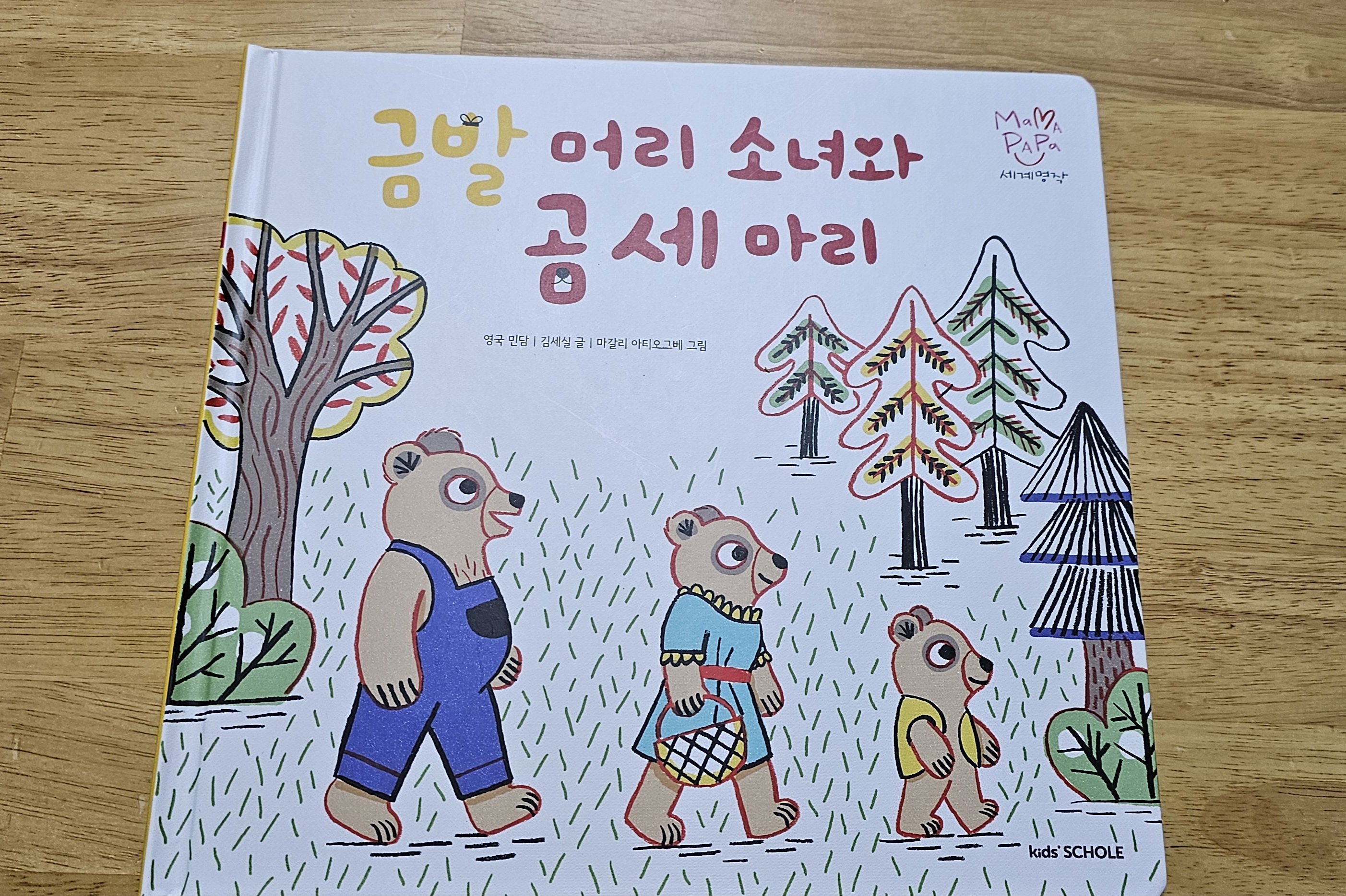 숲 속 오두막집에 금발 머리 소녀가 무단침입을 합니다.주인도 없는 집에 문이 열려있다고 들어가면 될까요?금발 머리 소녀는 호기심을 못 참고 집으로 들어갑니다.죽그릇 3개, 의자 3개, 침대 3개가 있습니다.장소마다 세개의 물건이 있는 것을 보니 세 가족이 살고 있는 듯 합니다. 이야기의 시작에는 아빠 곰, 엄마 곰, 아기 곰이 등장했기 때문에 이 새 물건의 주인이 누구인지 쉽게 유추할 수 있었습니다. 아이도 그 점을 염두에 두어서 가장 큰 물건은 아빠 곰의 물건이고, 중간 크기의 물건은 엄마 곰의 물건이라고 합니다. 그러면 당연히 가장 작은 물건은 아기 곰의 물건이 되는군요.호기심이 넘쳐나는 금발 머리 소녀는 아기 곰의 물건만 손을 뎁니다.죽은 다 먹어버리고, 의자는 망가트리고, 아기 곰의 침대에서 잠을..
